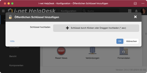Sie können öffentliche Schlüssel manuell hinzufügen, indem Sie sie per Drag & Drop in das Schlüsselfeld ziehen und auf OK klicken. Nach dem Hochladen werden E-Mails mit PGP-Verschlüsselung an die E-Mail-Adresse gesendet, auf die der öffentliche Schlüssel verweist.