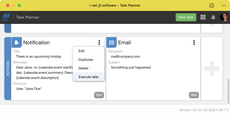 Note: Placeholders for all actions are set right after the last job finished. That means that no action can modify a placeholder for any follow-up actions.